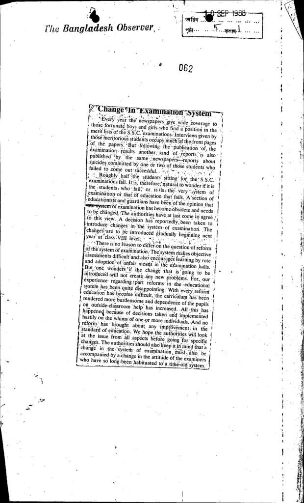 Change in examination system Published on Newspaper The Bangladesh Observer Category Public Examination Public Examination Others Download
