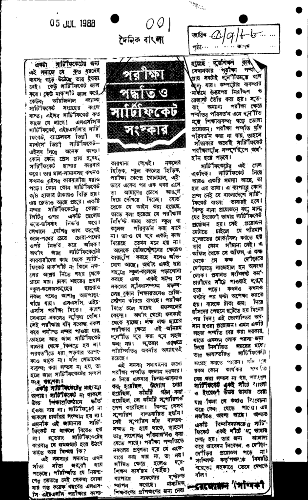 পরীক্ষা পদ্ধতি ও সার্টিফিকেট সংস্কার Published on Newspaper দৈনিক বাংলা Category Public Examination Public Examination Others Download