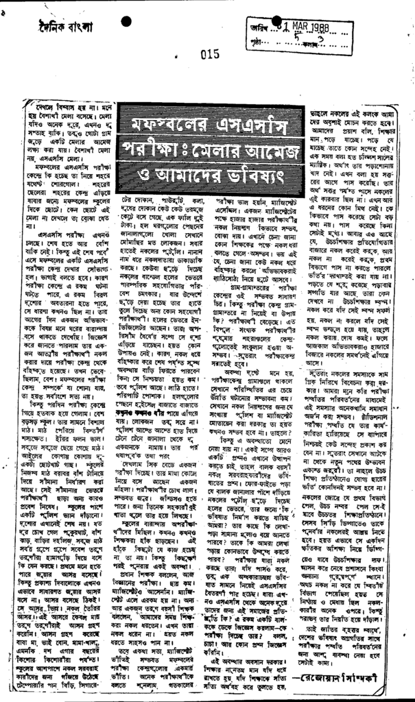 মফস্বলের এসএসসি পরীক্ষাঃ মেলার আমেজ ও আমাদের ভবিষ্যৎ Published on Newspaper দৈনিক বাংলা Category Public Examination Public Examination Others Download
