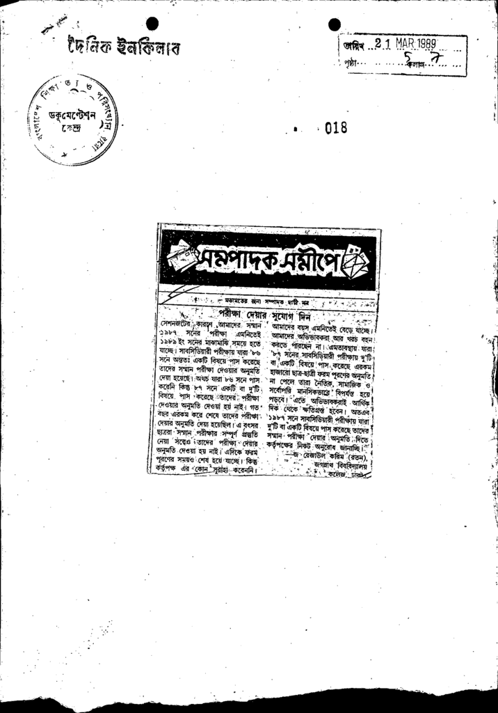 পরীক্ষা দেয়ার সুযোগ দিন Published on Newspaper দৈনিক ইনকিলাব Category Public Examination Public Examination Others Download