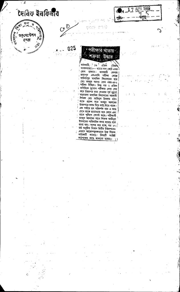পরীক্ষার খাতায় শত্রুতা উদ্ধার Published on Newspaper দৈনিক ইনকিলাব Category Public Examination Public Examination Others Download