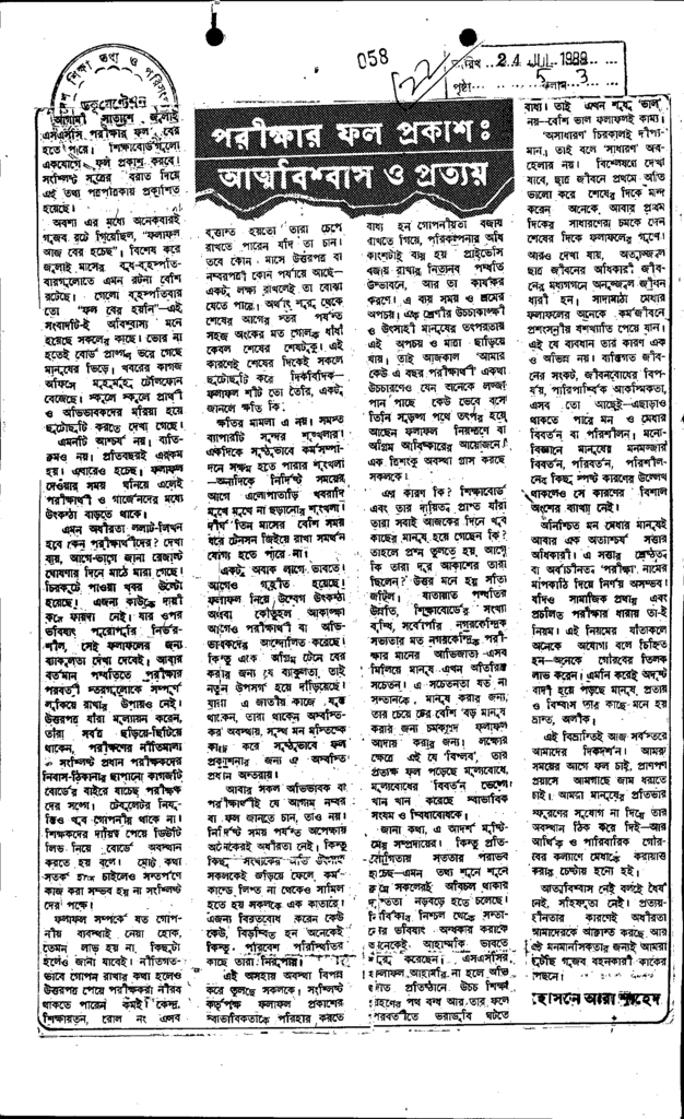 পরীক্ষার ফল প্রকাশঃ আত্মবিশ্বাস ও প্রত্যয় Published on Newspaper দৈনিক বাংলা Category Public Examination Public Examination Others Download