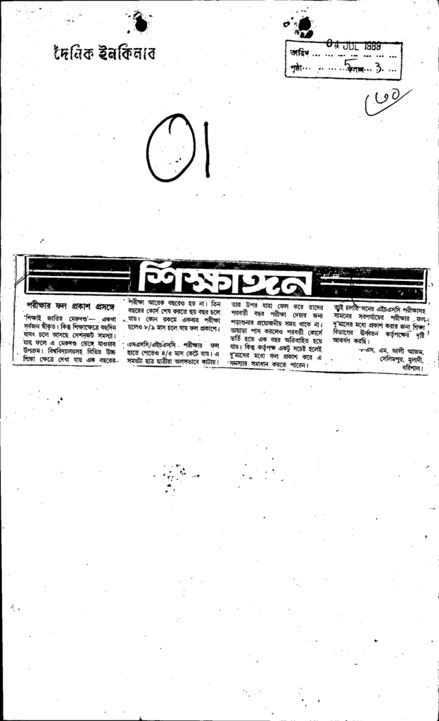 পরীক্ষার ফল প্রকাশ প্রসঙ্গে Published on Newspaper দৈনিক ইনকিলাব Category Public Examination Public Examination Others Download