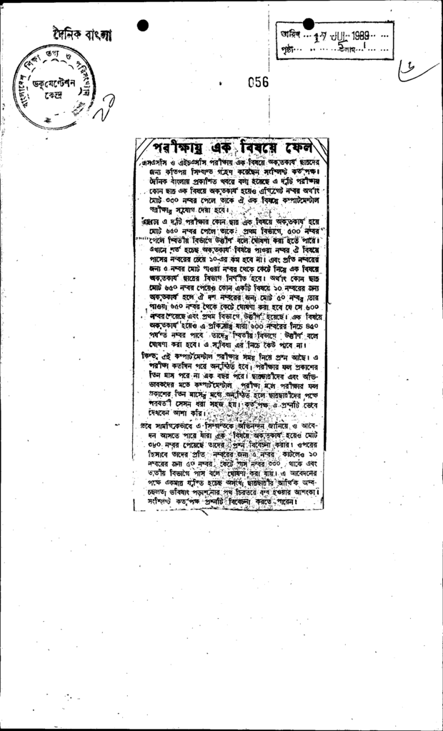 পরীক্ষায় এক বিষয়ে ফেল Published on Newspaper দৈনিক বাংলা Category Public Examination Public Examination Others Download