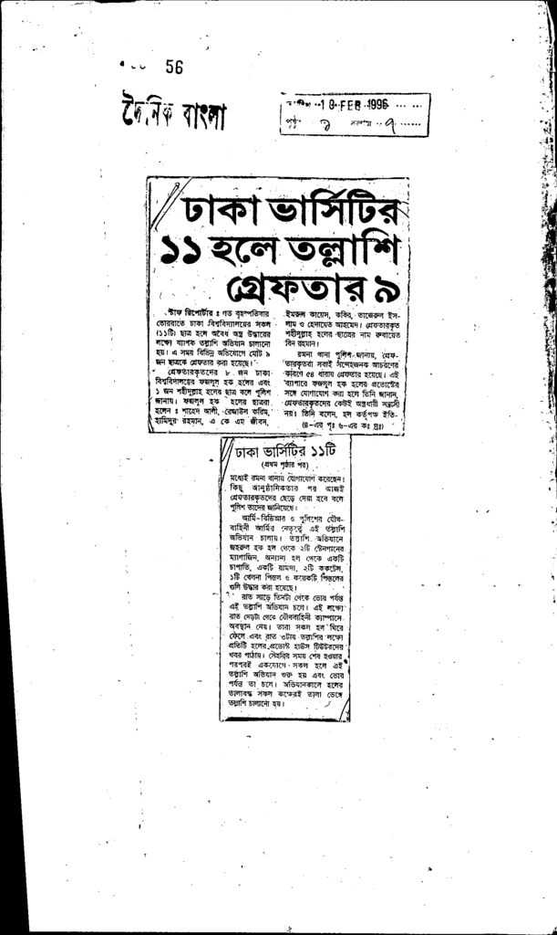 ঢাকা ভার্সিটির ১১ হলে তল্লাশি গ্রেফতার ৯ Published on Newspaper দৈনিক বাংলা Category General Education Download