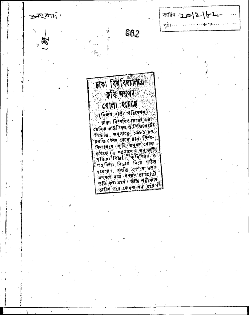 ঢাকা বিশ্ববিদ্যালয়ে কৃষি অনুষদ খোলা হয়েছে Published on Newspaper দৈনিক সংবাদ Category General Education Download