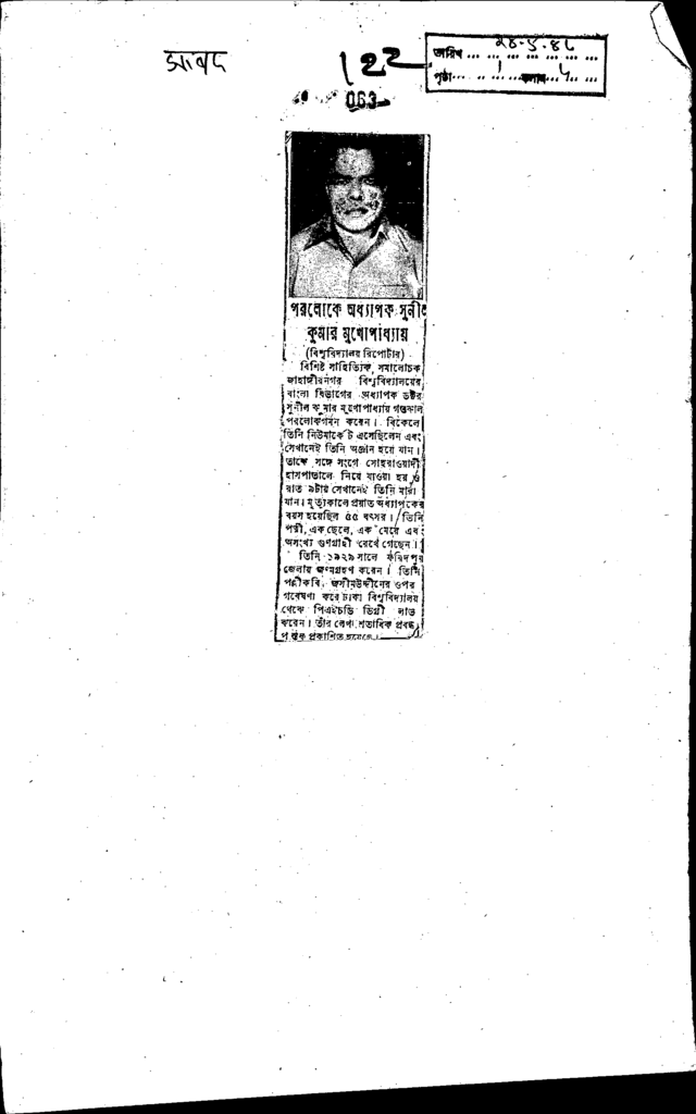 পরলোকে অধ্যাপক সুনীল কুমার মুখোপাধ্যায়