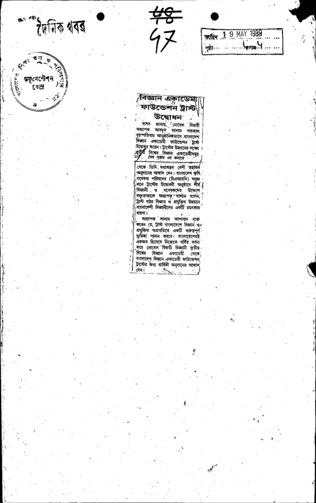 বিজ্ঞান একাডেমী ফাউন্ডেশন ট্রাস্ট উদ্বোধন Published on Newspaper দৈনিক খবর Category General Education Download