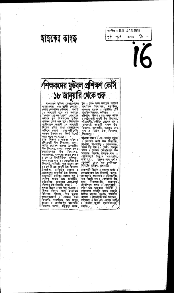 শিক্ষকদের ফুটবল প্রশিক্ষণ কোর্স ১৮ জানুয়ারী থেকে শুরু Published on Newspaper দৈনিক আজকের কাগজ Category General Education Download