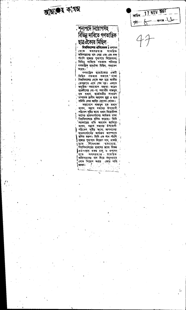 শন্যপদে নিয়োগসহ বিভিন্ন দাবিতে নগতান্ত্রিক ছাত্রঐক্রর মিছিল Published on Newspaper দৈনিক আজকের কাগজ Category Education Policy / Education Commission Download