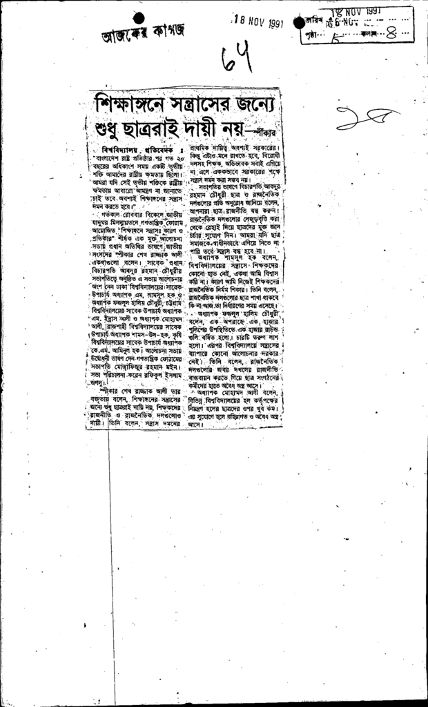 শিক্ষাঙ্গনে সন্ত্রাসের জন্যে শুধু ছাত্ররাই দায়ী না Published on Newspaper দৈনিক আজকের কাগজ Category General Education Download
