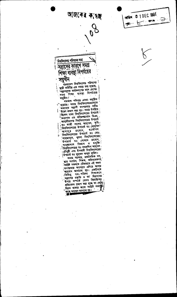 সন্ত্রাসের কারণে সমগ্র শিক্ষা ব্যবস্থা বিপর্যয়ের সস্মুখীন Published on Newspaper দৈনিক আজকের কাগজ Category General Education Download