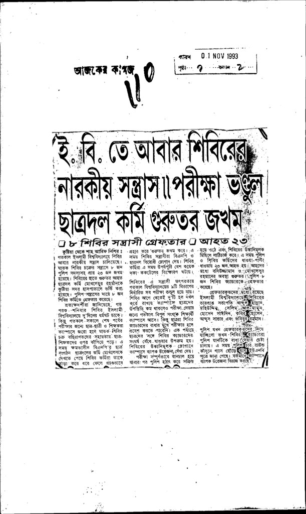 ই.বি. তে আবার শিবিরের নারকীয় সন্ত্রাস।। পরীক্ষা ভন্ডুল Published on Newspaper দৈনিক আজকের কাগজ Category General Education Download