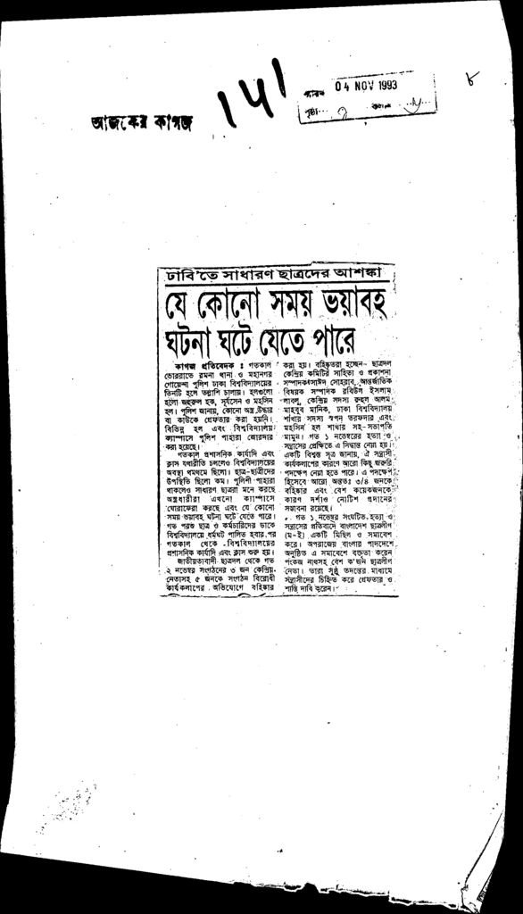 যে কোনো সময় ভয়াবহ ঘটনা ঘটে যেতে পারে Published on Newspaper দৈনিক আজকের কাগজ Category General Education Download