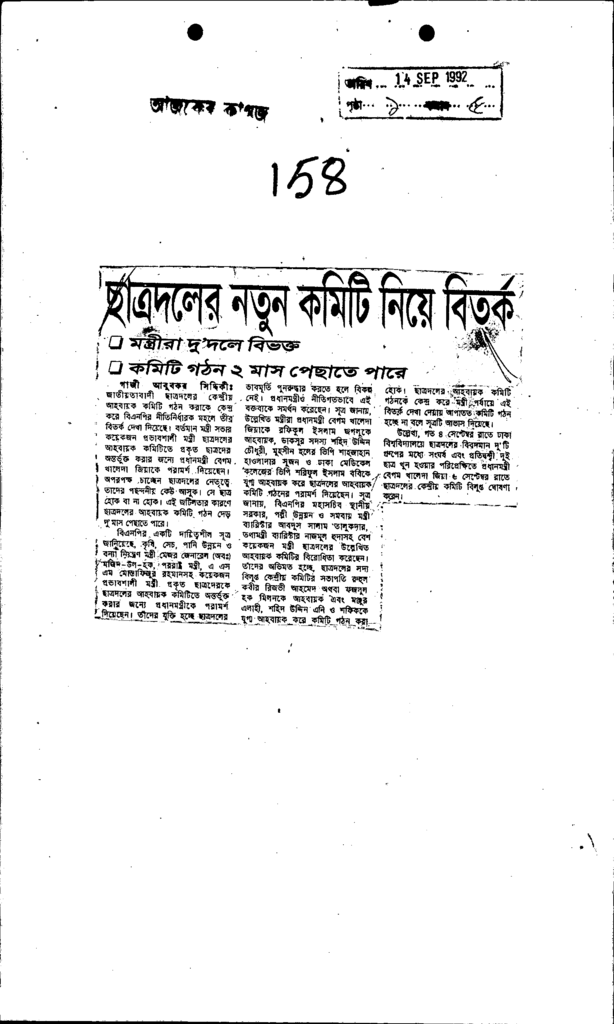 ছাত্রদলের নতুন কমিটি নিয়ে বিতর্ক- Published on Newspaper দৈনিক আজকের কাগজ Category Student Politics Download