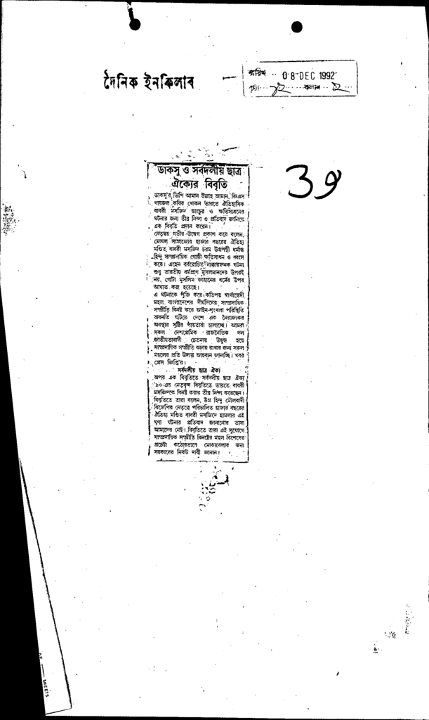 ডাকসু ও সর্বদলীয় ছাত্র ঐক্যের বিবৃতি Published on Newspaper দৈনিক ইনকিলাব Category Student Politics Download