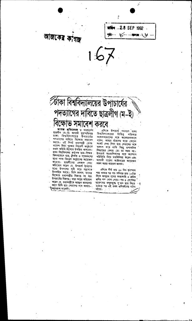 ঢাকা বিশ্ববিদ্যালয়ের উপাচার্যের দাবিতে ছাত্রলীগ (ম-ই) বিক্ষোভ সমাবেশ করবে Published on Newspaper দৈনিক আজকের কাগজ Category Student Politics Download