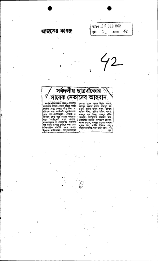সর্বদলীয় ছাত্র ঐক্যের সাবেক নেতাদের আহবান Published on Newspaper দৈনিক আজকের কাগজ Category Student Politics Download