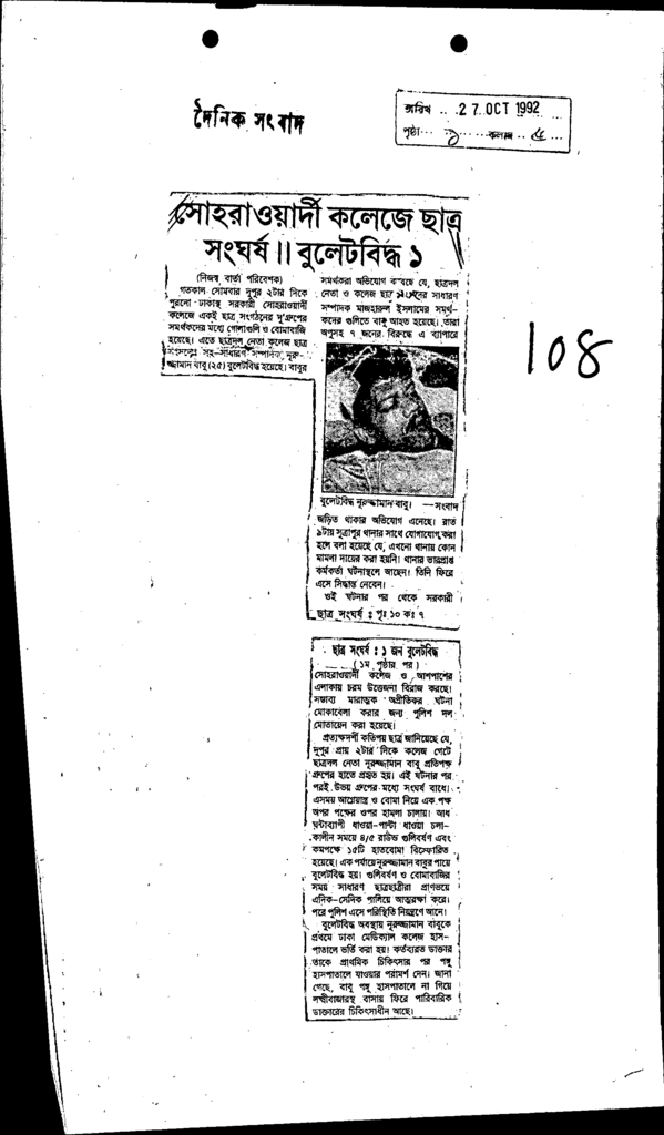 সোহরাওয়ার্দী কলেজে ছাত্র সংঘর্ষ বুরেটবিদ্ধ১ Published on Newspaper দৈনিক সংবাদ Category Student Politics Download