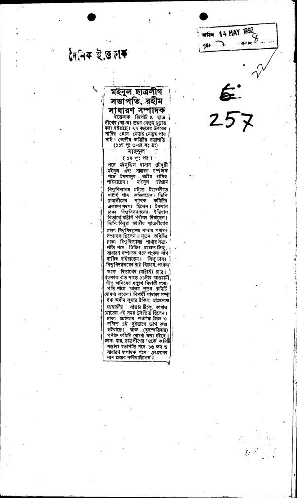 হইনুল ছাত্র লীগ সভাপতি, রহীম সাধারন সম্পাদক Published on Newspaper দৈনিক ইত্তেফাক Category Student Politics Download