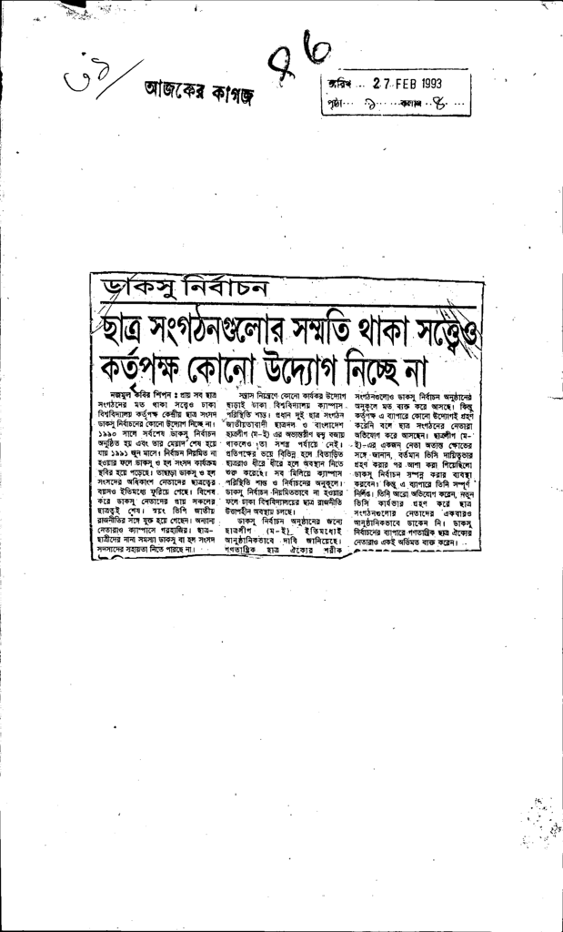 আজ ঢাকা ভার্সিটি শিক্ষক সমিতির নির্বাচন Published on Newspaper দৈনিক বাংলা Category Student Politics Download