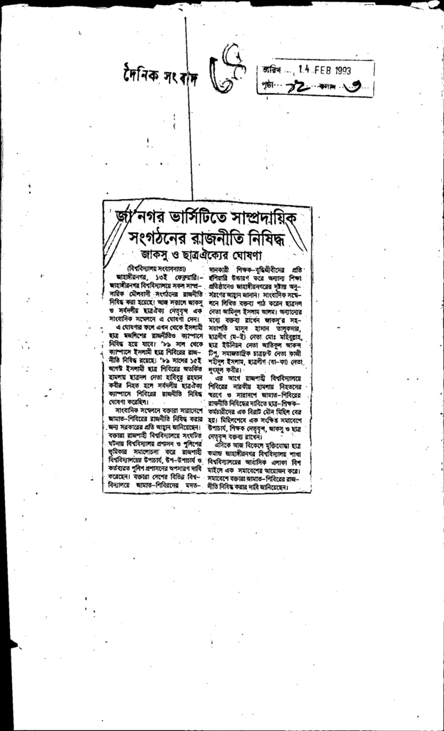 ঐতিহ্যের গাঁতা চিরকাল এদশের মানুষ স্মরণ করবে। Published on Newspaper দৈনিক আজকের কাগজ Category Student Politics Download