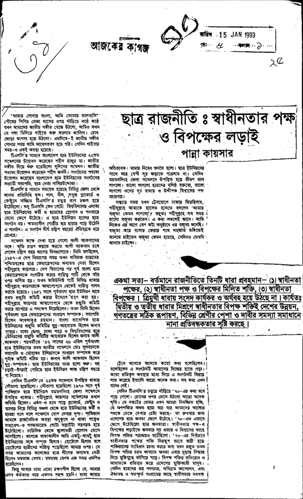 গণতান্ত্রিক সরকার বহাল সত্ত্বেও বিরানব্বিই সারে দেশের শ্কিসা প্রতিষ্ঠান গুলো ছিরোপ স্বেরাচাল শাসনামরের মতোই অশান্ত Published on Newspaper দৈনিক আজকের কাগজ Category Student Politics Download