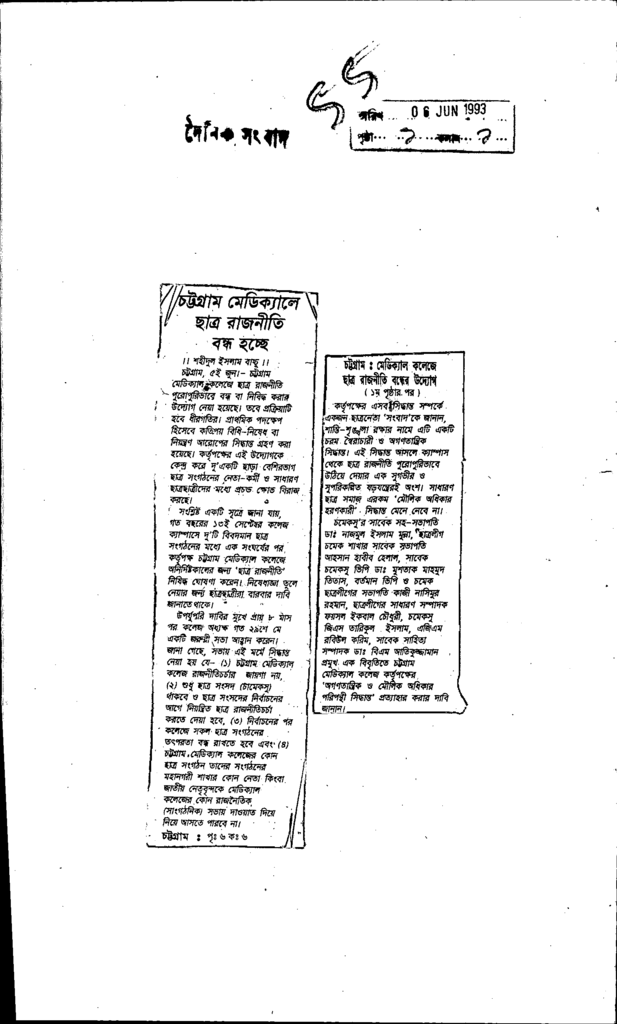 ছাত্রনেতবৃ্দ স্পীকারের কাছে ম্মারকলিপি Published on Newspaper দৈনিক সংবাদ Category Student Politics Download