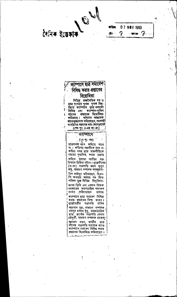 ছাত্র লীগ শিবির সংঘর্ষ আহত ১৮ গ্রফতার ৭ Published on Newspaper দৈনিক আজকের কাগজ Category Student Politics Download