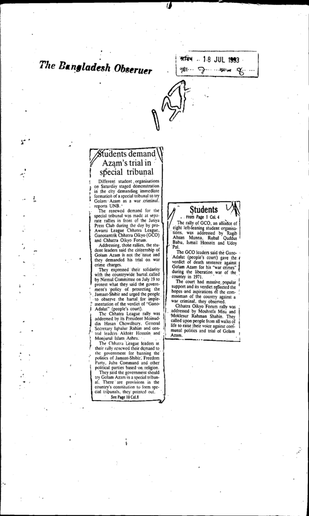 বর্ধিত ছাত্র বেতন ও ফি প্রত্রাহারের দাবিতে দেশব্যাপী ছাত্র ধর্মঘট পালিত Published on Newspaper দৈনিক আজকের কাগজ Category Student Politics Download