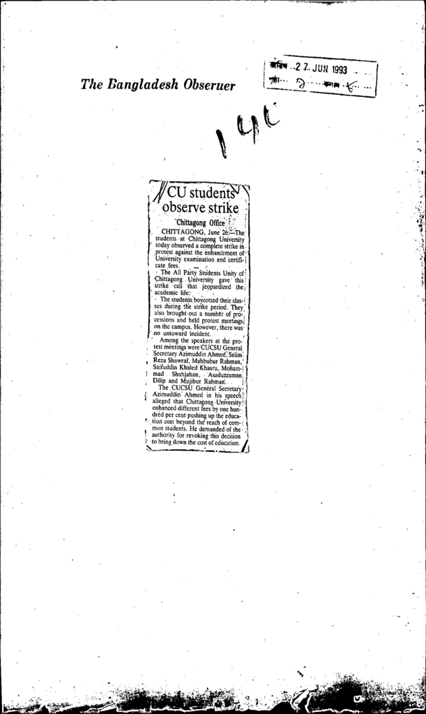 সর্বদলীয় ছাত্র ঐক্যের প্রতিবাদ ক্যাম্পাসে ইত্তেজনা Published on Newspaper দৈনিক আজকের কাগজ Category Student Politics Download