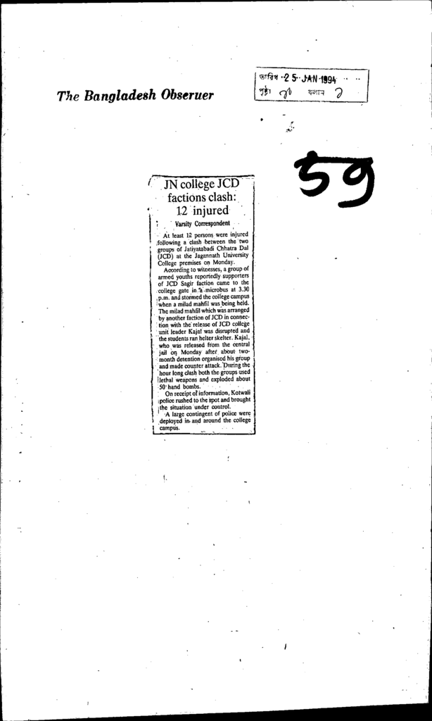 Jn college jcd factions clash 12 injured Published on Newspaper The Bangladesh Observer Category Student Politics Download