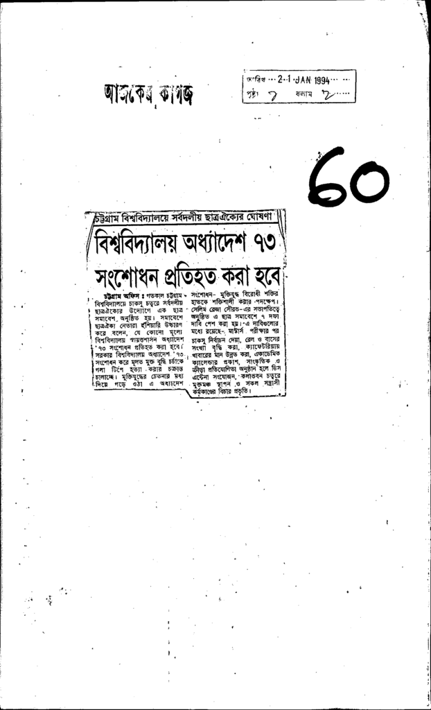 চট্রগ্রাম বিশ্ববিদ্যালয়ে সর্বলীয় ছাত্র ঐক্যের ঘোসণা Published on Newspaper দৈনিক আজকের কাগজ Category General Education Download
