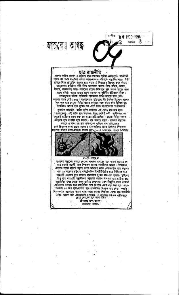 ছাত্র রাজনীতি Published on Newspaper দৈনিক আজকের কাগজ Category Personal Opinion / Discussion / Commentary Download