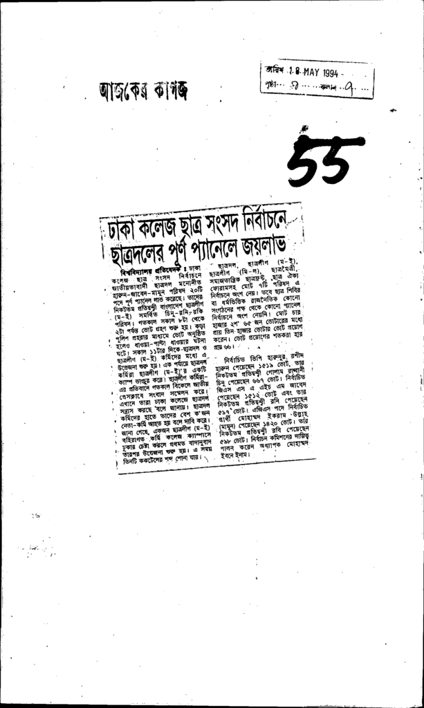 ঢাকা কলেজ ছাত্র সংসদ নির্বাচনে ছাত্রদলের পূর্ণ প্যানেলে জয়লাভ Published on Newspaper দৈনিক আজকের কাগজ Category General Education Download