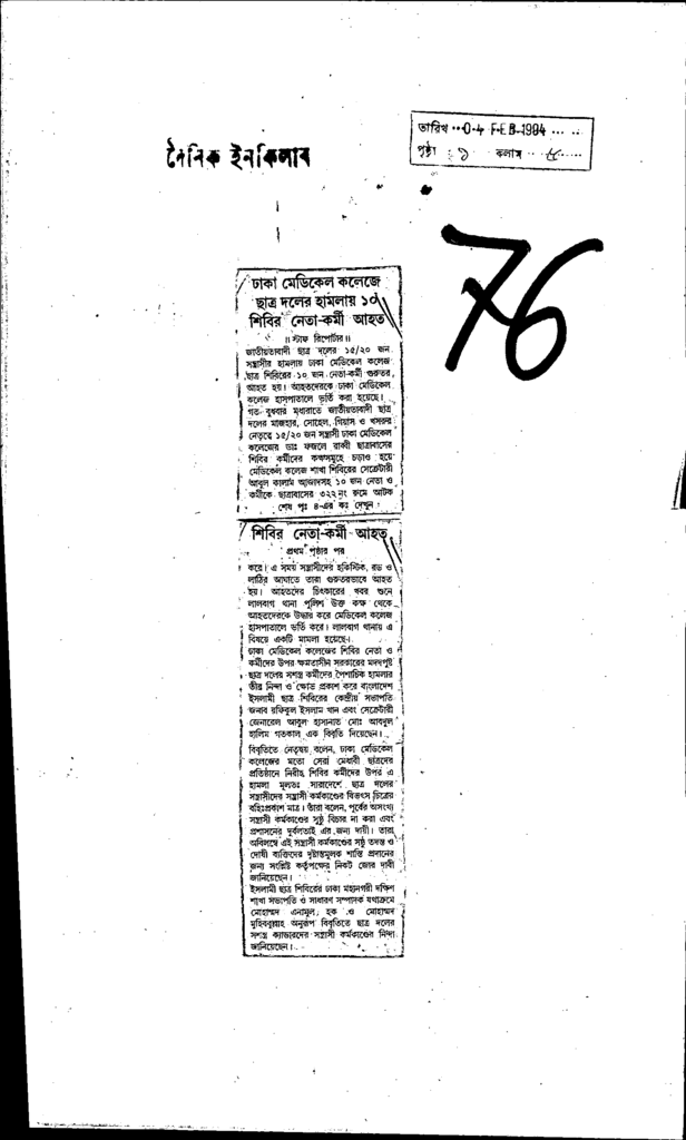 ঢাকা মেডিকেল কলেজে ছাত্র দলের হামলায় ১০জন শিবির নেতা কর্মী আহত Published on Newspaper দৈনিক ইনকিলাব Category Student Politics Download