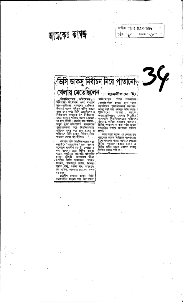 ভিসি ডাকসু নির্বাচন নিযে পাতানো খেলায মেতেছিলেন Published on Newspaper দৈনিক আজকের কাগজ Category Student Politics Download