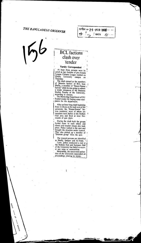 Bcl factions clash over tender Published on Newspaper The Bangladesh Observer Category Student Politics Download