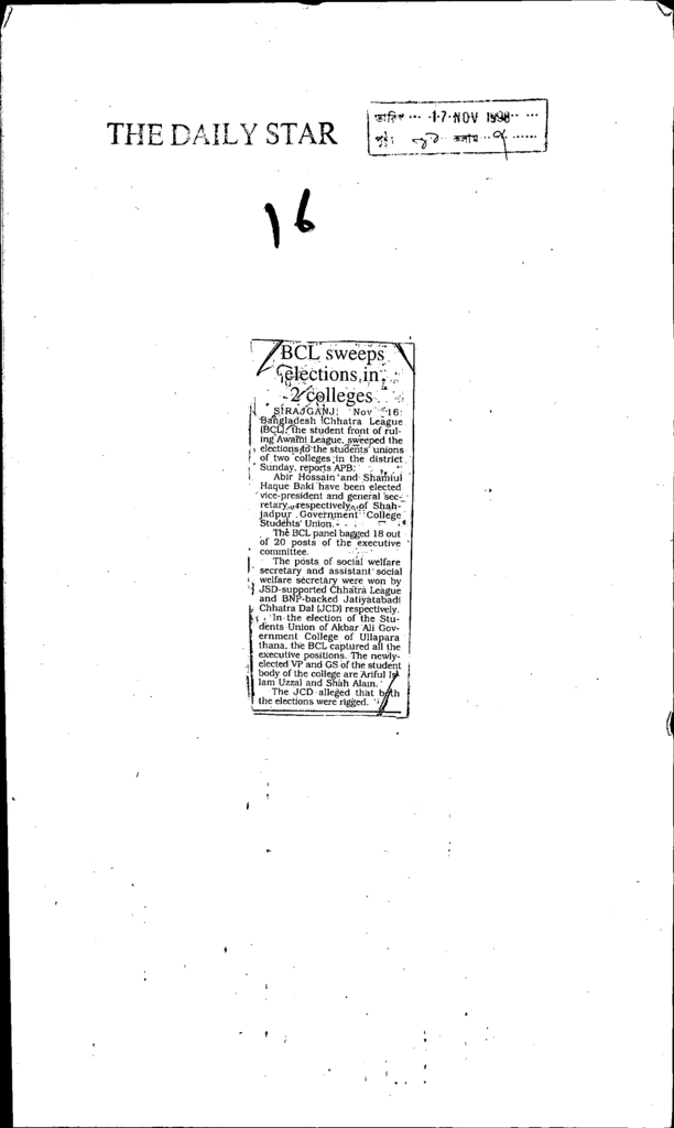 Bcl sweeps elections in 2 coleges Published on Newspaper The Daily Star Category Student Politics Download