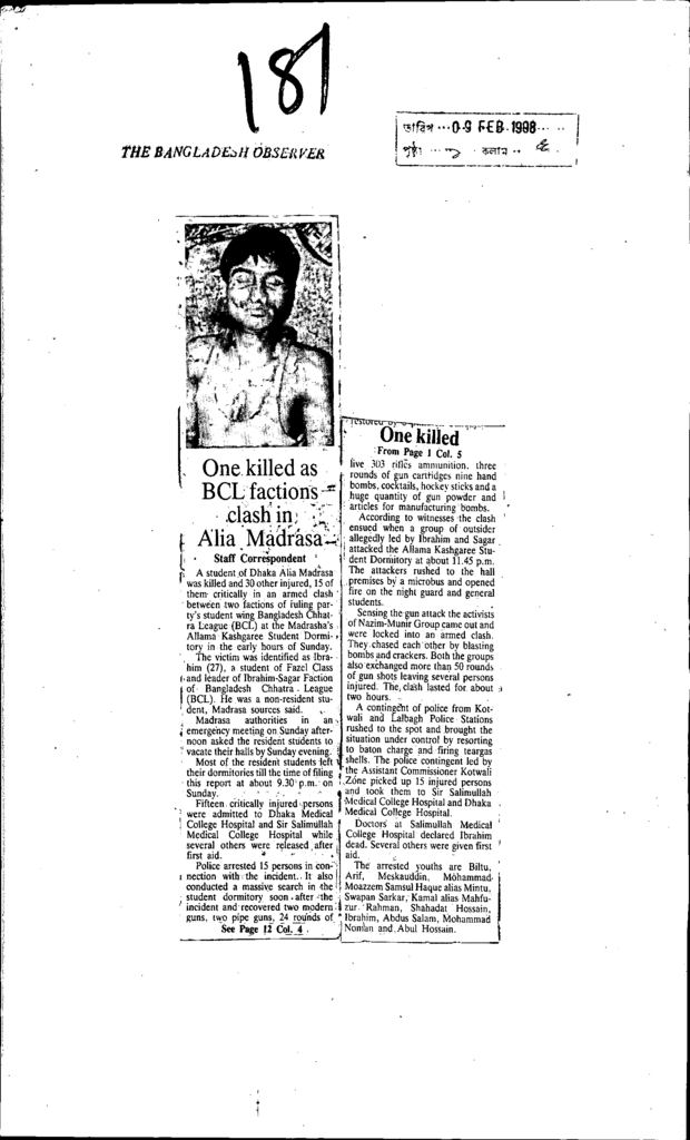 One killed as bcl factions clash in alia madrasa Published on Newspaper The Bangladesh Observer Category Student Politics Download