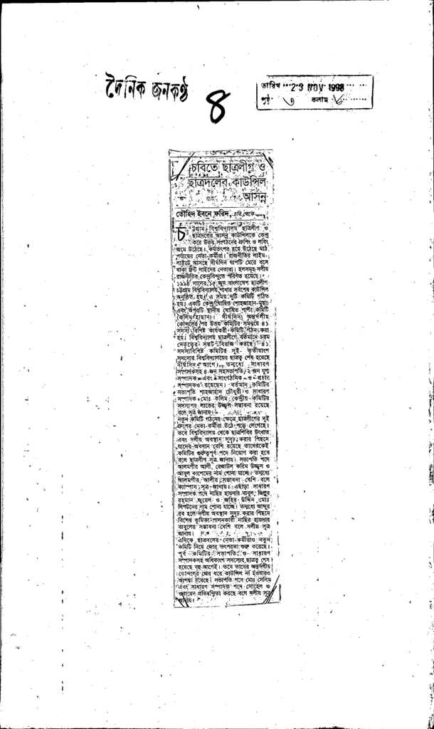 চবিতে ছাত্রলীগ ও ছাত্রদলের কাউন্সিল আসন্ন Published on Newspaper দৈনিক জনকণ্ঠ Category Student Politics Download