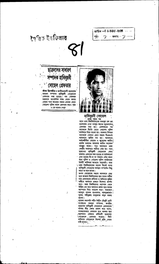 ছাত্রদলের সাধারণ সম্পাদক হাবিবুন্নবী সোহেল গ্রেফতার Published on Newspaper দৈনিক ইনকিলাব Category Student Politics Download