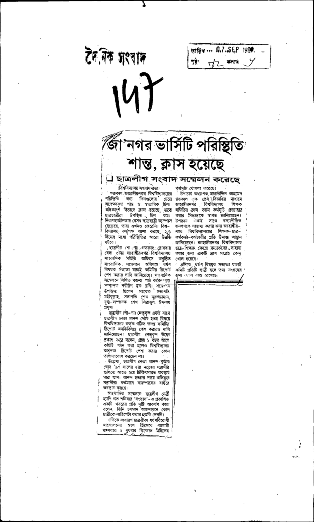 জা’নগন ভার্সিটি পরিস্হিতি শান্ত, ক্লাস হয়েছে Published on Newspaper দৈনিক সংবাদ Category Student Politics Download