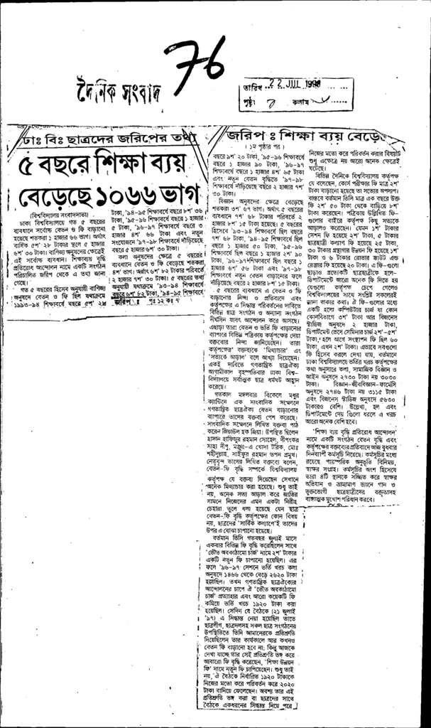 ঢা: বি: ছাত্রদরে জরিপের তথ্য ৫ বছরে শিক্ষা ব্যয় বেড়েছে ১০৬৬ভাগ Published on Newspaper দৈনিক সংবাদ Category Student Politics Download