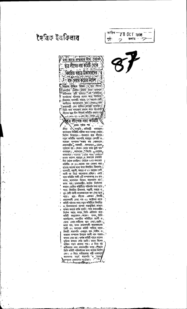 মধ্য রাতে রুদ্ধদ্বার দীর্ঘ বৈঠক ছাত্র লীগের নয়া কমিটি থেকে বিবাহিত অছাত্র ীটকাদারদের বাদ দেযার কঠোর নিধেশ Published on Newspaper দৈনিক ইনকিলাব Category Student Politics Download