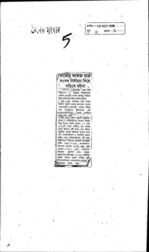 রাজেন্দ্র কলেজ ছাত্র সংসদ নির্বাচন নিয়ে Published on Newspaper দৈনিক সংবাদ Category Student Politics Download