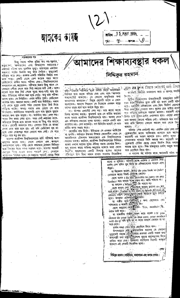 • দৈনিক আজকের কাগজ