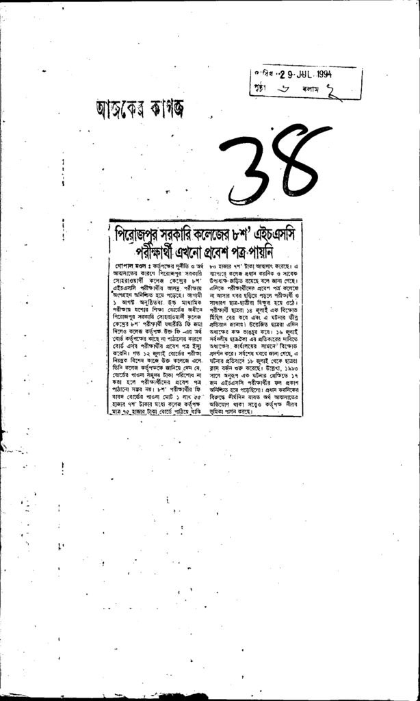 পিরোজপুর সরকারি কলেজের 8শ এইচএসসি পরীক্ষার্থী এখনো পত্র পায়নি Published on Newspaper দৈনিক আজকের কাগজ Category Public Examination Public Examination Others Download
