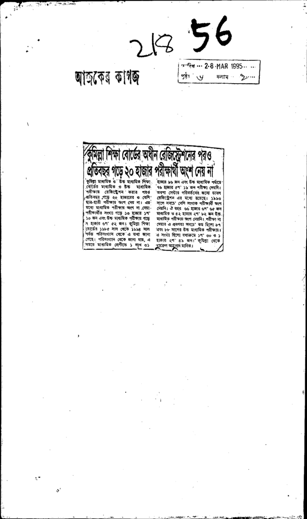 কুমিল্লা শিক্ষা বোর্ডের অধীন রেজিস্ট্রেশনের পরও প্রতিবছর গড়ে 20 হাজার পরীক্ষার্থী অংশ নেয় না Published on Newspaper দৈনিক আজকের কাগজ Category Public Examination Public Examination Others Download