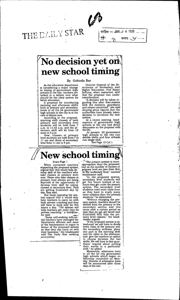 No decision yet on new school timing Published on Newspaper The Daily Star Category General Education Download